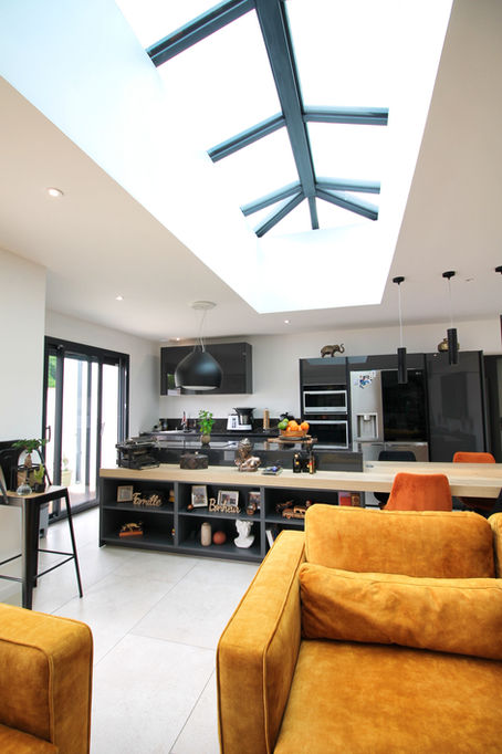 Entrée/bureau ouvrant sur un vaste séjour de plus de 60M2 avec sa verrière de toit sur mesure apportant une belle lumière naturelle, cuisine intelligente et connectée aussi pratique qu’esthétique avec son plan en pierre naturelle et sa buanderie/cellier attenante. Suite parentale avec espace dressing et salle d’eau privative, WC indépendant.
